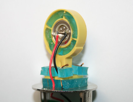 ・ ECMセル固定部品の台座を緩衝材で浮かせ、直径1mmのゴム釣り糸(裁縫用)で