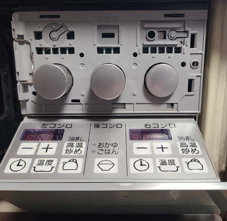 右側のコンロ操作部(下段をPush Outしたところ)