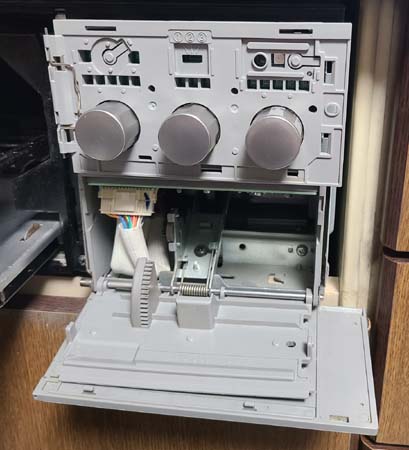 上段の蝶番を外してパネルを分離する。スイッチモジュールが現れる